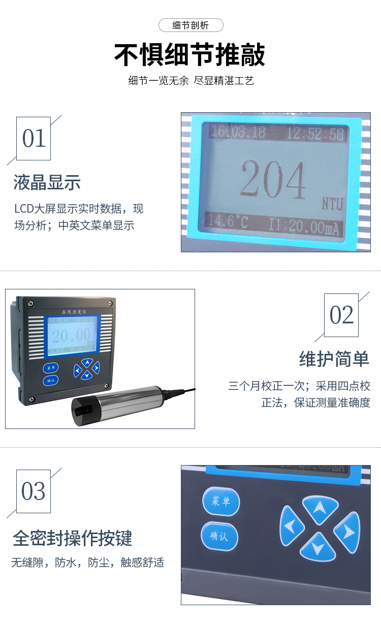 在線污水處理的沉淀池、二沉池、污泥濃縮池的污泥界面測定;自來水廠沉淀池的泥位測定,給水廠(沉淀池)、洗砂廠(沉淀池)、電力(灰漿沉淀池)的泥位測定。